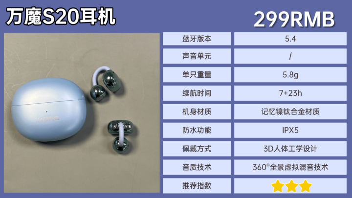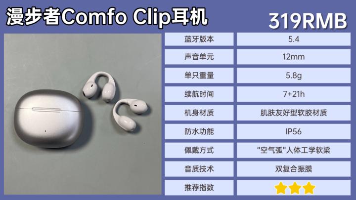 产品亮点:这款耳机的驱动单元表现良好,能提供清晰饱满的音质。降噪方面具备一定技术支持,可在一定程度上隔绝外界噪音,优化聆听体验。耳挂式设计适配运动等场景,佩戴稳固,且价格处于中低端区间,性价比颇高。