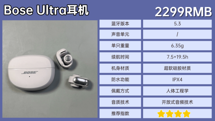 品牌背景:Bose是美国极具影响力的音频品牌,拥有超半个世纪的音频技术研发经验,在降噪、音质等音频技术领域居于行业领先,产品广受全球消费者认可。