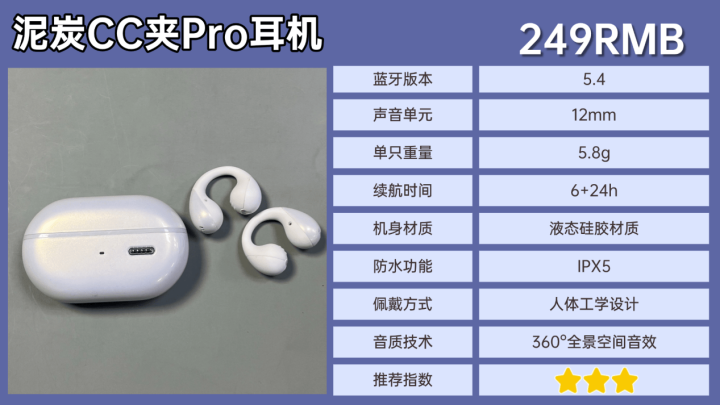 产品亮点:泥炭 CC 夹 Pro 在佩戴舒适度上的表现确实让人印象深刻,它的耳夹设计不是那种生硬夹在耳朵上的款式,而是结合了人体工学考量,弧度做得很贴合耳廓的自然曲线,戴上之后能稳稳卡在合适的位置,既不会松松垮垮容易掉,也不会因为夹得太紧让耳朵有明显的压迫感 耳朵周围也不会有酸胀的痕迹,这点对需要长时间戴耳机的人来说很友好。声音表现上,它在中低频部分的优势挺突出的,音乐里的律动感传递出来;中频的人声也比较清晰,没有被背景音乐盖过去的情况,日常用来听流行歌、民谣或者有声书,听感都很舒服。