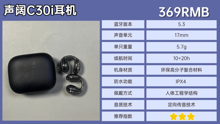 推荐理由:采用C形设计,佩戴时无夹耳感!