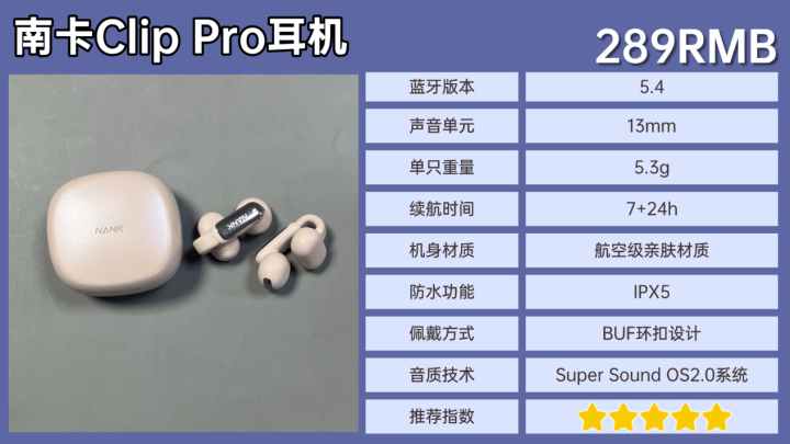 在基础配置上,南卡clip pro同样丰富。支持新一代高端蓝牙5.4芯片,是很多百元耳机都没有的配置。此外,clip pro还采用了突破性的DS2.0指向性传声技术,能够定位声音传输方向,让声音更集中,有效防止漏音产生!45ms的超低延时,玩游戏、看剧都丝滑流畅。