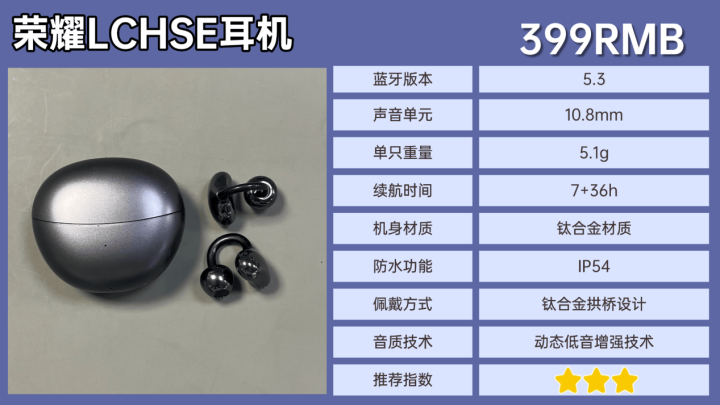 产品亮点:这款耳机融入荣耀特色音频技术,在声音还原度上表现不俗,能清晰呈现音乐细节。其蓝牙连接稳定性佳,搭配荣耀手机等设备可实现便捷操作。耳挂式设计兼顾舒适与稳固,价格亦具优势,能满足大众对高性价比开放式耳机的需求。