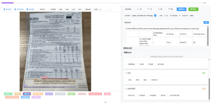 支持 PP-StructureV3完成3460条版面解析相关数据构建。团队参与研发的版面解析端到端标注工具,支持公式、表格等元素的编辑与渲染,大幅提升构建高质量版面解析数据集的效率,并作为长期工具使用,为多个重点模型的训练和评测奠定基础。