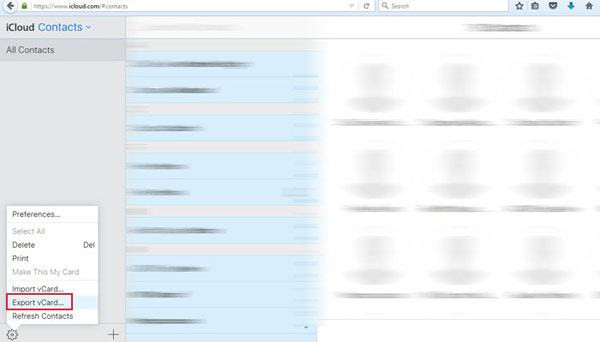 前往“联系人”选项,并导入存储在iCloud中的vCard文件。