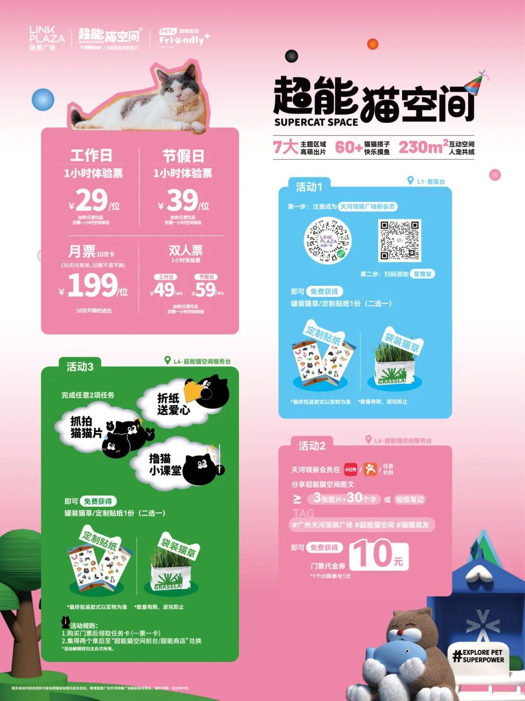 入场后完成指定任务有机会得罐装猫草/定制贴纸;