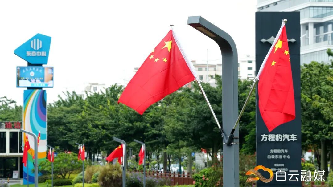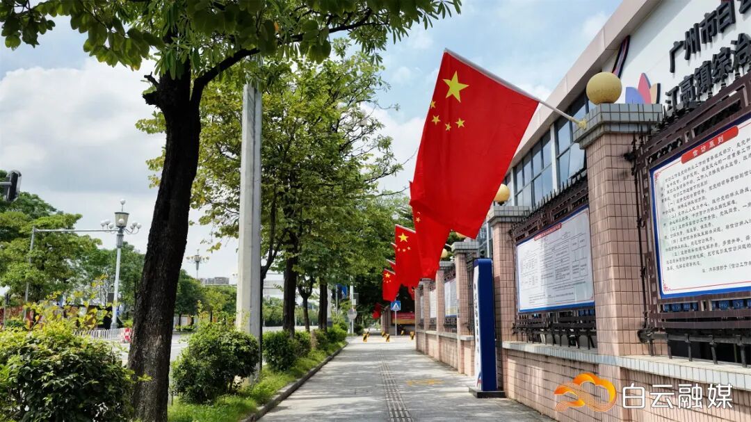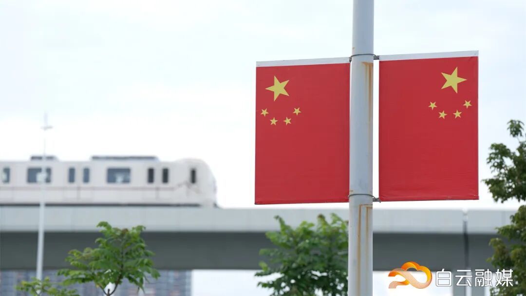 △白云区镇街主要路段,灯杆上一面面鲜艳的旗帜,映照出市井烟火中的家国情怀。