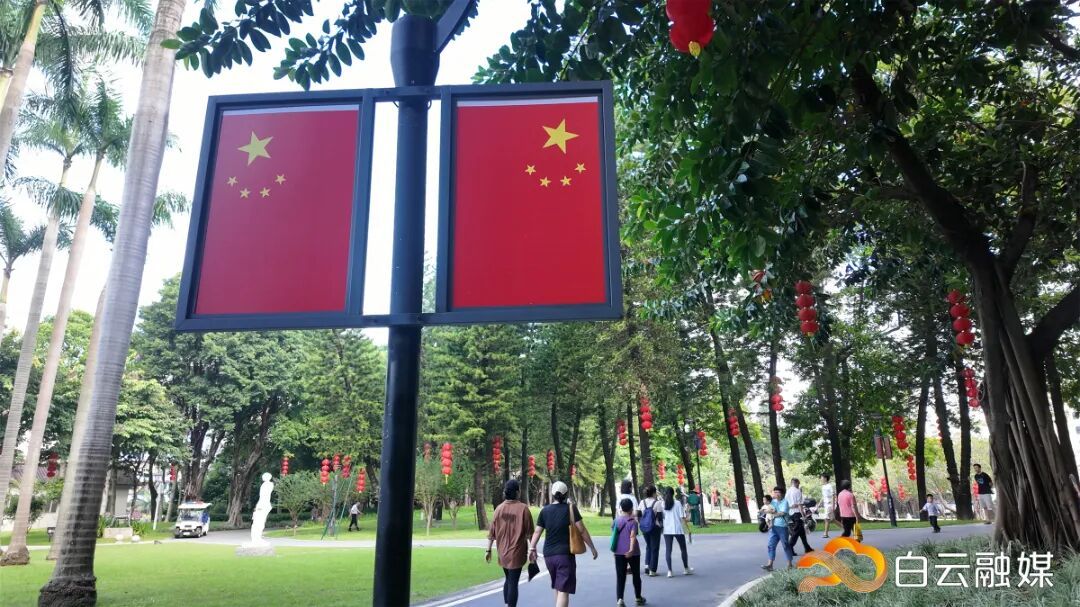 △白云山风景名胜区各个景区、广州市儿童公园等地,不仅国旗飘扬,更结合特色打造主题装饰。